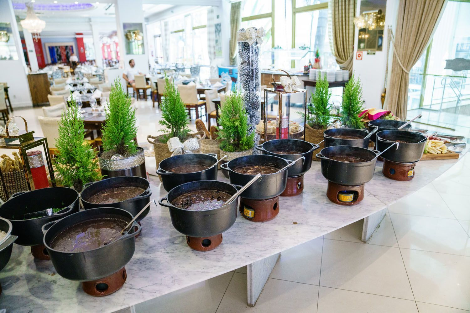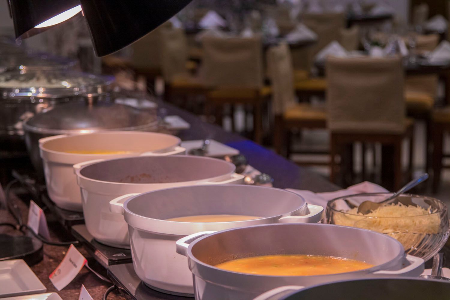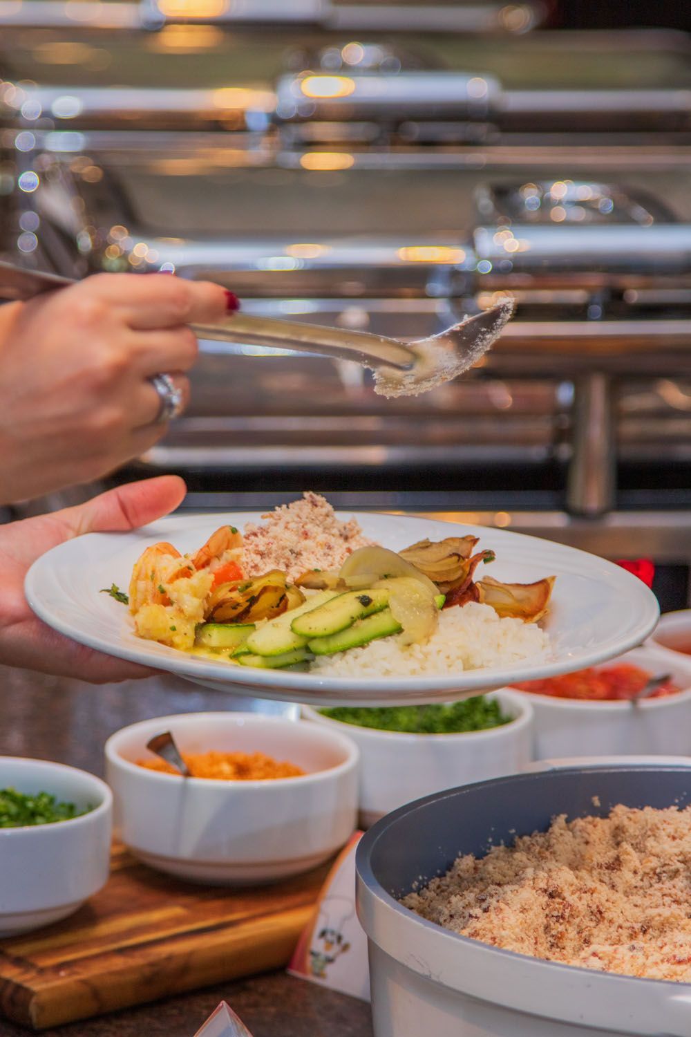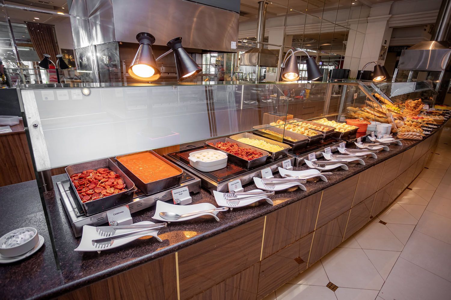 Você pode se deliciar em nosso buffet recheado de opções, carnes suculentas, saladas e sobremesas irresistíveis, que vão desde os sabores tradicionais da cozinha brasileira até delícias internacionais.