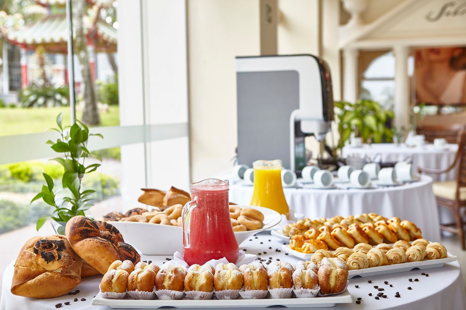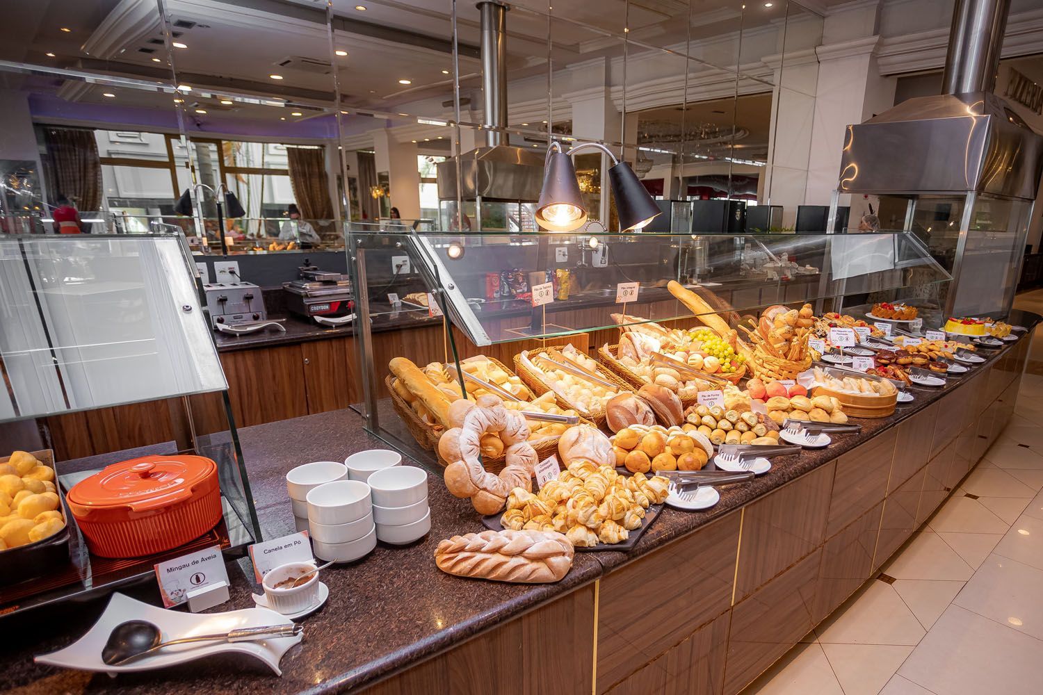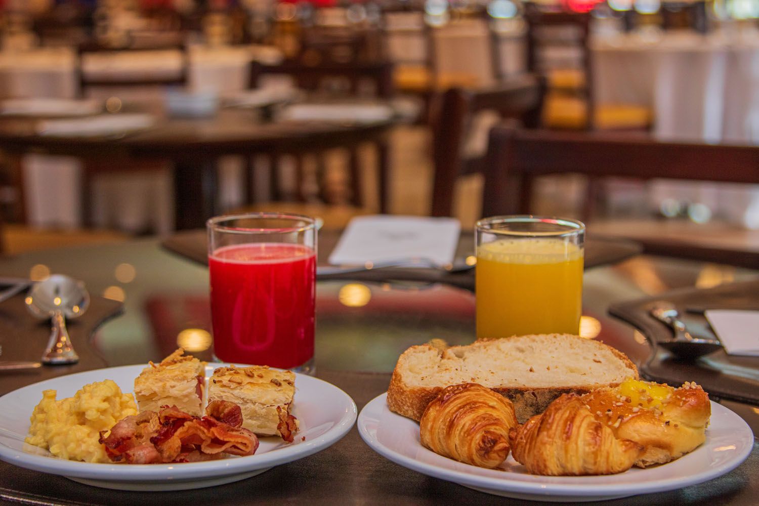 O buffet é de dar água na boca: frutas frescas, sucos naturais, pães quentinhos, croissants, queijos variados, frios, geleias, iogurtes, cereais, ovos, bacon, panquecas, waffles, crepes... a lista é interminável.