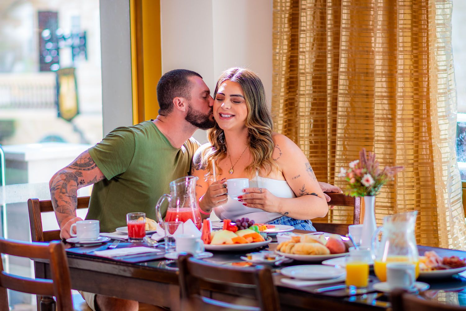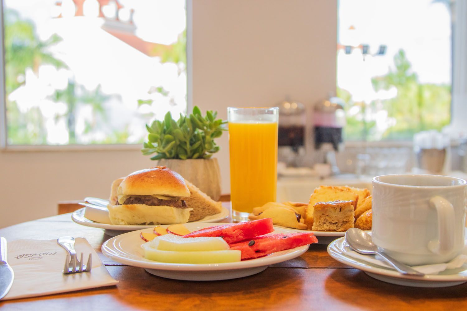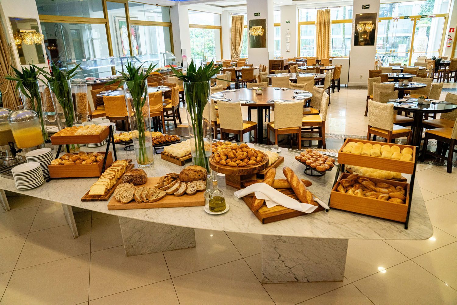 O buffet é de dar água na boca: frutas frescas, sucos naturais, pães quentinhos, croissants, queijos variados, frios, geleias, iogurtes, cereais, ovos, bacon, panquecas, waffles, crepes... a lista é interminável.