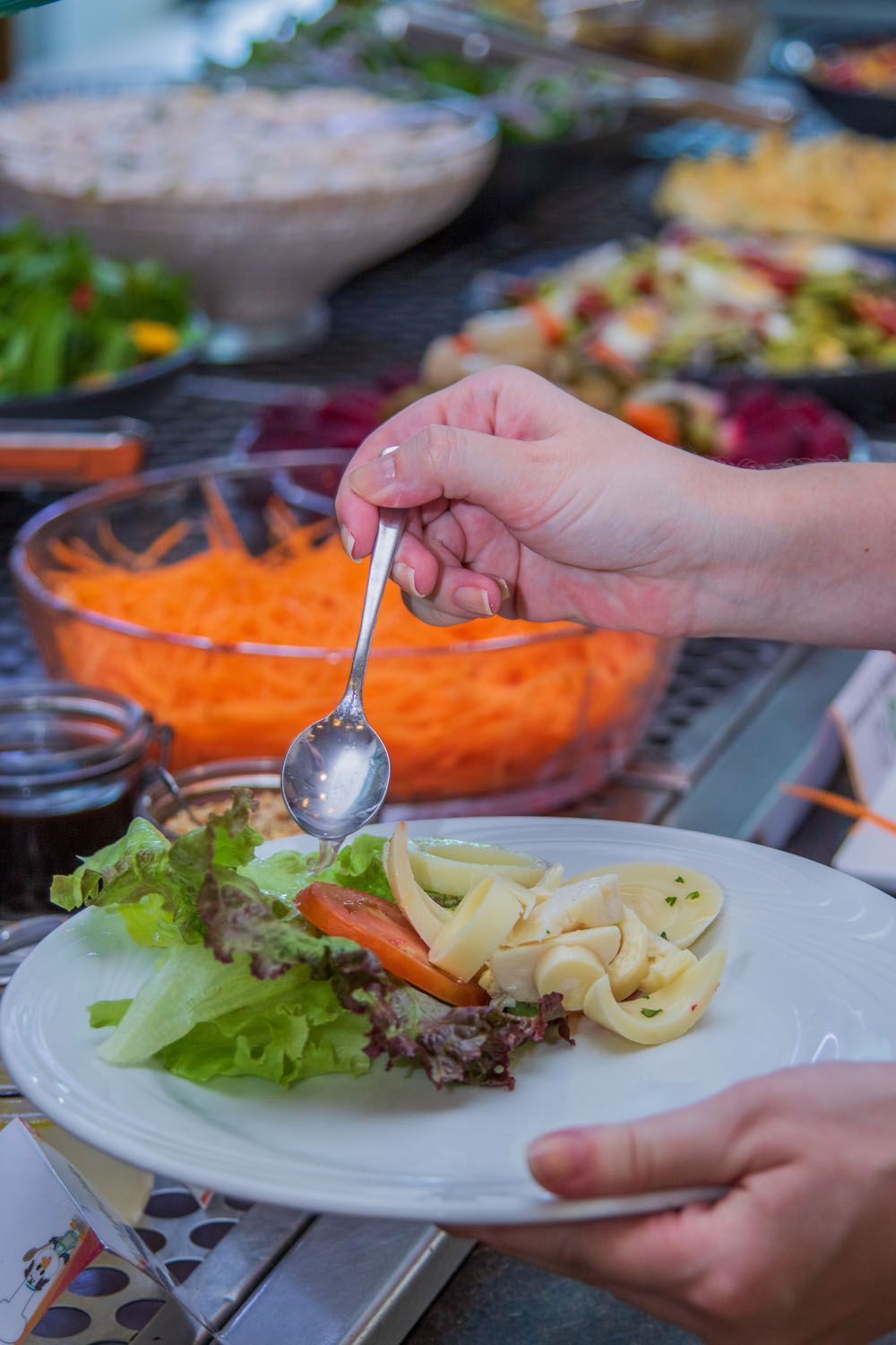 Pensando no conforto e bem-estar dos nossos hóspedes com restrições alimentares, aqui vão algumas informações importantes: Não temos uma cozinha separada para preparar alimentos livres de alérgenos, então pode haver traços desses alimentos em nossos pratos. Para quem não pode consumir leite de vaca, temos opções como bolos, pães e doces sem lactose, omelete, ovo mexido (peça para fazer na estação de massas, pois o do buffet contém leite), tapioca, pão-de-queijo feito com ingredientes alternativos e macarrão sem glúten. Se tiver outras restrições, é só perguntar ao Maître ou ao Chef sobre os ingredientes e, se quiser algo especial, avise a cozinha com antecedência.